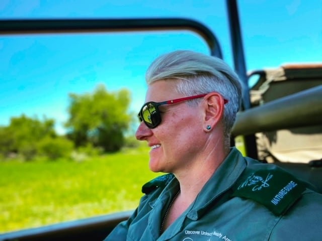 Born in South Africa, I grew up on a farm in Limpopo Province, close to the Kruger National Park. My love for the South African bush began at a young age. After high school, I moved to Johannesburg to pursue a career in the city. Working and living in the concrete jungle, I always felt like something was missing in my life. Finally, after 21 years, I decided to give up city life for the bush. I enrolled in an Apprentice Field Guide program at Limpopo Field Guiding Academy (LFGA), a FGASA endorsed institution in the Dinokeng North Game Reserve. I remember showing up only to discover that I was the oldest female amongst the young students. “What did I get myself into?” I wondered.
