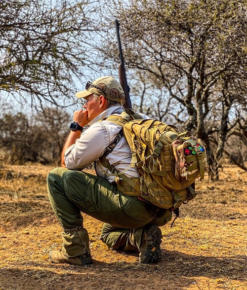 Traveling became increasingly difficult due to lockdown protocols, which presented me with the opportunity to further my studies and qualify as an Apprentice Trails Guide with LFGA. This course undoubtedly builds character, from Advanced Rifle Handling (ARH) to shooting under immense pressure with simulated lion charges, walking for 7 hours per day in the scorching sun, and tracking dangerous game, all whilst your rifle ends up weighing a ton as your arms do not feel like yours anymore. “Don’t be a sissy, Zaan, if the guys can do it, you can do it better,” I continued to tell myself as we pushed on through the Red Spike-thorns, tracking rhino, buffalo, lion and more. This is where I learned that you DO NOT wear shorts when tracking regardless of the weather.