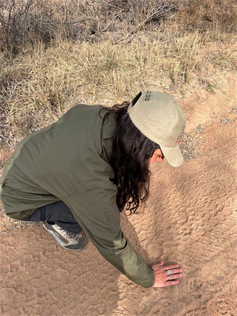 The training component that perhaps immersed me the most was that of track and sign, which allowed me to see the messages inherent in the surrounding nature and the animals in a totally different way. We spent entire days inspecting animal tracks, droppings, markings and burrows, studying the animals’ dietary habits and preferences and understanding their direction or gait. Many times I lay completely on the ground to interpret valuable information from the substrate, that would help me to figure out which animal had passed the very spot before us. This component week completely absorbed me and, despite my fatigue in the evenings, I would join my colleagues around the campfire to review the tracks of the day and do even better the next day.