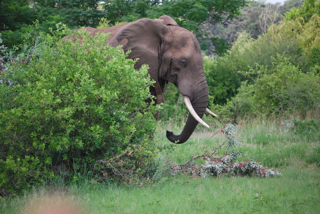 Later that day we found the third animal we have been in search of. After following their dung, broken trees, branches and tracks we watched 3 bull elephants eating peacefully. The next morning and last day of dangerous game I woke up to heavy breathing, water splashing and chewing. After getting the nerve to leave my tent I saw that it was from a buffalo. Most likely the same one who has been making frequent visits to our camp.