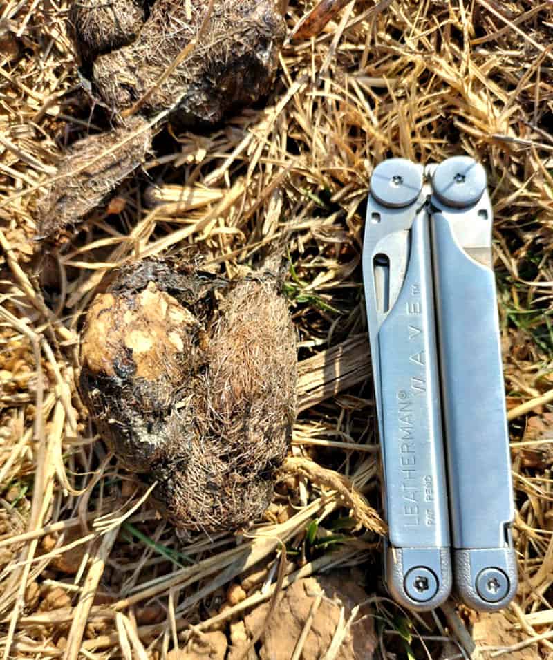 Scale is important when it comes to identification, especially when photographing tracks and signs. This is lion scat, and you DO NOT want to be handling this with your bare hands. Unlike the herbivores, whose dung can be handled, predator scat has a variety of bacteria that could cause health issues.