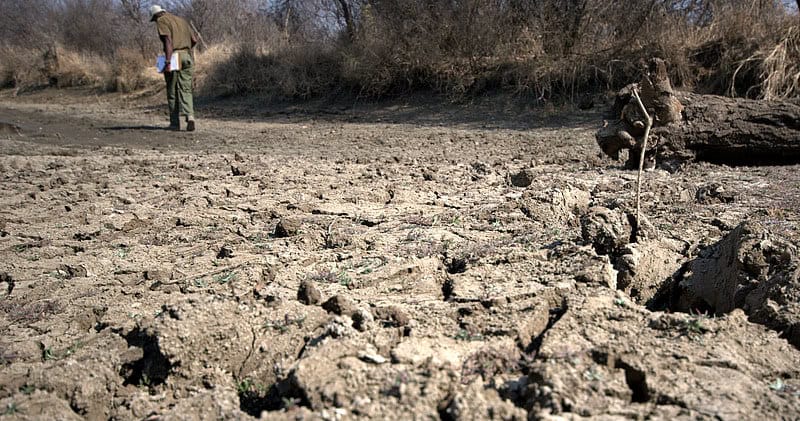 I really thought that Pines would not be able to find tracks in this dried river bed. The cracked, dried mud proved to be difficult, but eventually, a couple of really interesting tracks were found and the students asked to identify them.